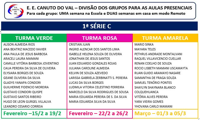 A partir de segunda-feira dia 15 de Fevereiro a Escola começará a receber os alunos em três grupos organizados e divididos por cores verde, rosa e amarelo, como já apresentado anteriormente.